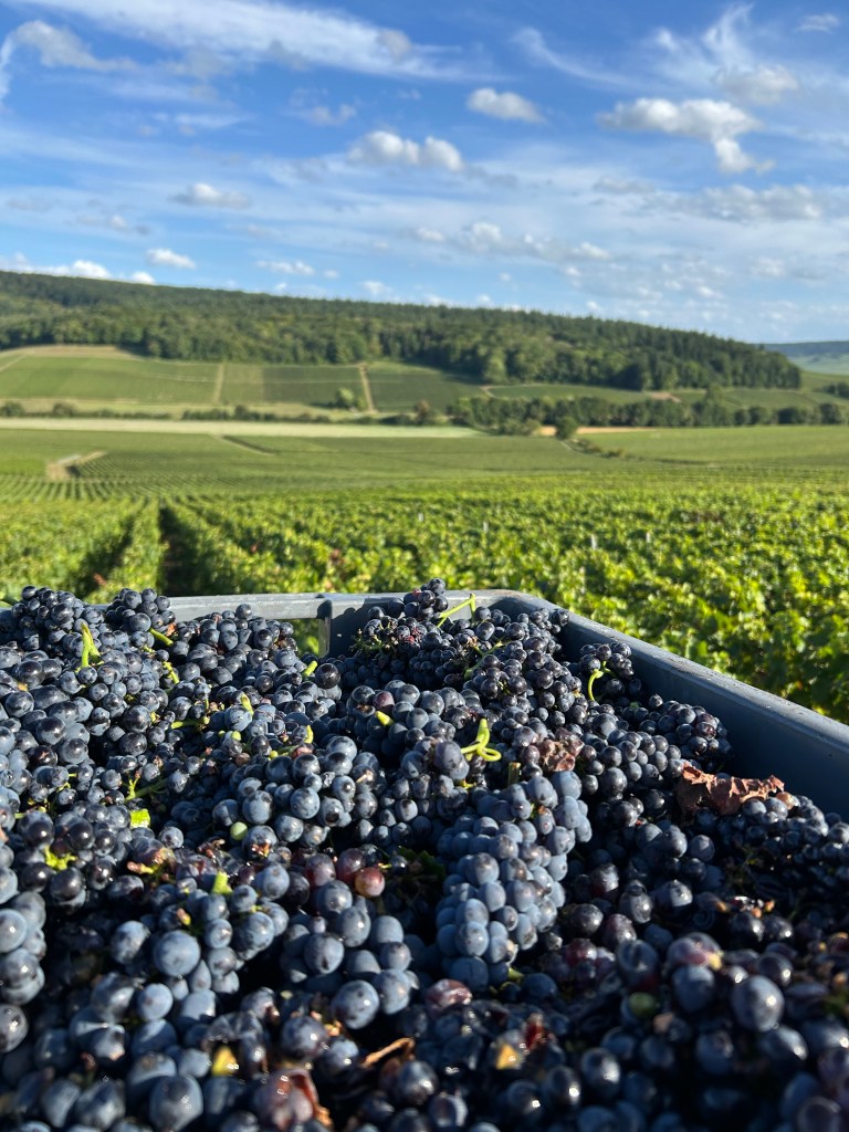 Quant au Pinot Noir, c’est un raisin à peau noire et à chair blanche offrant puissance et structure au vin, avec des arômes de fruits rouges et une belle ampleur en bouche.